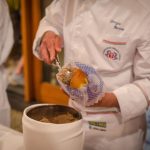 Abbiamo avuto la possibilità di degustare i Cerasuoli e i vini di Arianna Occhipinti, Poggio di Bortolone, COS, Guglielmo Manenti, Nanfro, Avide, Paolo Calì e, ovviamente, i vini della cantina Gulfi. Per quanto riguarda invece il food, abbiamo assaggiato l’arancino “venticinque”, preparato con Ragusano DOP e altri 25 ingredienti dell’ambasciatore del gusto ennese Rosario Umbriaco. L’arancino è stato fritto al momento, permettendo così alla panatura di restare croccante e saporita. Ottimi anche i mini panini con porchetta di suino nero dei Nebrodi e cipolla caramellata di Giuseppe Oriti, titolare del pluripremiato Agriturismo Il Vecchio Carro di Messina. La sua porchetta è stata (e non ce ne vogliano gli altri) una delle delizie delle serata. Presenti anche alcuni chef dell’Associazione Provinciale Cuochi Iblei, tra cui Daniela Crispino e Simona Bellulardo dell’azienda Pitittu, che hanno proposto i “sapori del territorio”, Salvina Scotti de Trovato Carni Gastronomia che ha preparato uno “Smorrebrod”, ovvero un crostino con roastbeef di vitello, riduzione di Cerasuolo, songino e cipolla, Salvo Vicinale (chef de Al Vecchio Mulino) che ha proposto un gelato, denominato “Ciupaciups dolce piacere”, ovvero una pralina di ricotta di pecora, con gelatina al marsala e fiori secchi, una delizia servita su un bastoncino da lecca-lecca. Lo chef e docente dell’Istituto Grimaldi di Modica Giorgio Barone ha realizzato “La Granita di Gelsi e la sua Brioche”, perfetta per concludere la serata. Lo chef Daniele Alescio del ristorante De Gustibus di Pedalino ha fatto conoscere a tutti la “Pinza a carrittiera”, una focaccia preparata con farro lungo, crusca e russello, con fettine di ragusano semi-stagionato, prosciutto di produzione propria, capuliato, basilico greco, vinegrette e coriandolo. Infine, Rita Russotto del ristorante Gli Aromi di Scicli ha proposta una specialissima “Cotoletta di melanzana”, il tutto con il coordinamento dell’executive chef della Locanda Gulfi, Carmelo Floridia. In degustazione anche una ricca selezione di prodotti del territorio come l’olio extravergine d’oliva dei Frantoi Cutrera, i pani preparati con le farine del Mulino La Timpa di Annalisa Dibenedetto e i prodotti a base di zafferano dell’azienda Oro degli Iblei di Buccheri. Ottimi anche i particolarissimi formaggi siciliani di Food Custodi dei sensi: in particolare, è stato possibile degustare dal formaggio di capra girgentana, al piacentino ennese fino alla tuma persa. Di certo, non poteva mancare il Ragusano Dop, il Caciocavallo modicano e il pecorino siciliano pepato. Particolare interesse ha suscitato il formaggio fresco di capra, denominato “Ficu”, morbido e cremoso, assolutamente da provare. Tutta la serata è stata allietata dalla nota band ragusana Tinto Brass Street Band, che ha proposto un repertorio fatto di musica jazz alla maniera di New Orleans e ha fatto divertire il pubblico presente. Un perfetto connubio fra sapore, musica, eleganza e stile.
