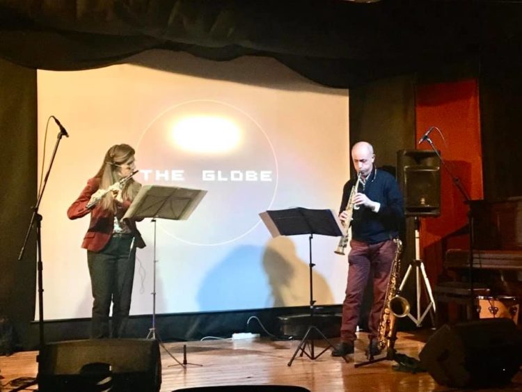 Una serata all’insegna della buona musica con il Duo unico nel suo genere, sia per il sound legato all’abbinamento insolito del flauto con il sax soprano arricchito in alcuni brani dal tamburo rebolo, sia per la scelta del repertorio musicale che spazia dalla musica classica (J.S.Bach, Debussy) al jazz nelle sue varie forme (da Scott Joplin a Gershwin,…..) soffermandosi anche sulla musica popolare brasiliana e dei primi del novecento. L’Accademia delle Prefi con il direttivo e il Presidente Salvatore Battaglia hanno omaggiato gli artisti sia per la qualità che per l’originalità del repertorio proposto. Un pubblico esigente ed emozionato ha seguito il concerto al The Globe.