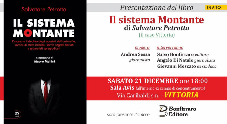 Si terrà il prossimo 21 dicembre a Vittoria si terrà l’ultima presentazione del tour di Salvatore Petrotto, autore del libro “Il Sistema Montante”.