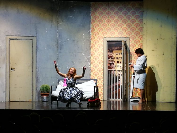 Quando una coppia di conviventi scoppia oltre al dolore della perdita c’è un problema immediato da risolvere: trovare una sistemazione abitativa. Così, per un caso scombinato, due single, abbandonati dai loro rispettivi partner, si ritrovano ad avere affittato la stessa piccola e brutta stanza di un appartamento romano situato al quindicesimo piano di un palazzo sprovvisto di ascensore. La mancanza di serietà di alcune agenzie immobiliari o la carenza di alloggi decorosi qui sono solo un tema marginale. A Cavallaro interessa far vedere come interagiscono due sconosciuti che, a insaputa l’uno dell’altra. convivono in un piccolo spazio. Seguono qui pro quo, entrate ed uscite da porte e finestre in un turbinio di situazioni comiche culminanti nell’arrivo di un tombeur de femmes, che si rivelerà molto diverso da come si era presentato all’inizio. Si va verso il lieto fine con un messaggio di speranza: l’amore è dietro l’angolo e si può trovare nelle situazioni più disparate. Un messaggio positivo che però (e come avrebbe potuto essere altrimenti?) poggia anche su una punta ironica e autoironica. Una segnalazione particolare merita Claudia Ferri, unica interprete femminile che, con la sua piacevole presenza, sa riempire bene la scena, tenendo testa con maestria, ai due personaggi maschili, Cavallaro e Marco Maria Della Vecchia. Una vera e propria sorpresa questo testo fresco e dinamico che, ancora una volta, ha fatto sì che l’appuntamento della stagione di “Teatro in Primo Piano” abbia colto decisamente nel segno. Moltissimi gli applausi. Gli stessi che sono stati tributati alla memoria di Marcello Perracchio quando a ricordarne la statura artistica è stato, a fine serata, lo stesso Cavallaro che con il grande maestro aveva avuto l’opportunità di condividere una serie di momenti lavorativi.