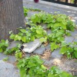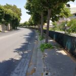 Viale Colajanni a Ragusa nel più assoluto degrado. Il verde alla base degli alberi è nuovamente abbondante, nonostante una recente manutenzione, ma il degrado del marciapiede e dell’inferriata è massimo.
