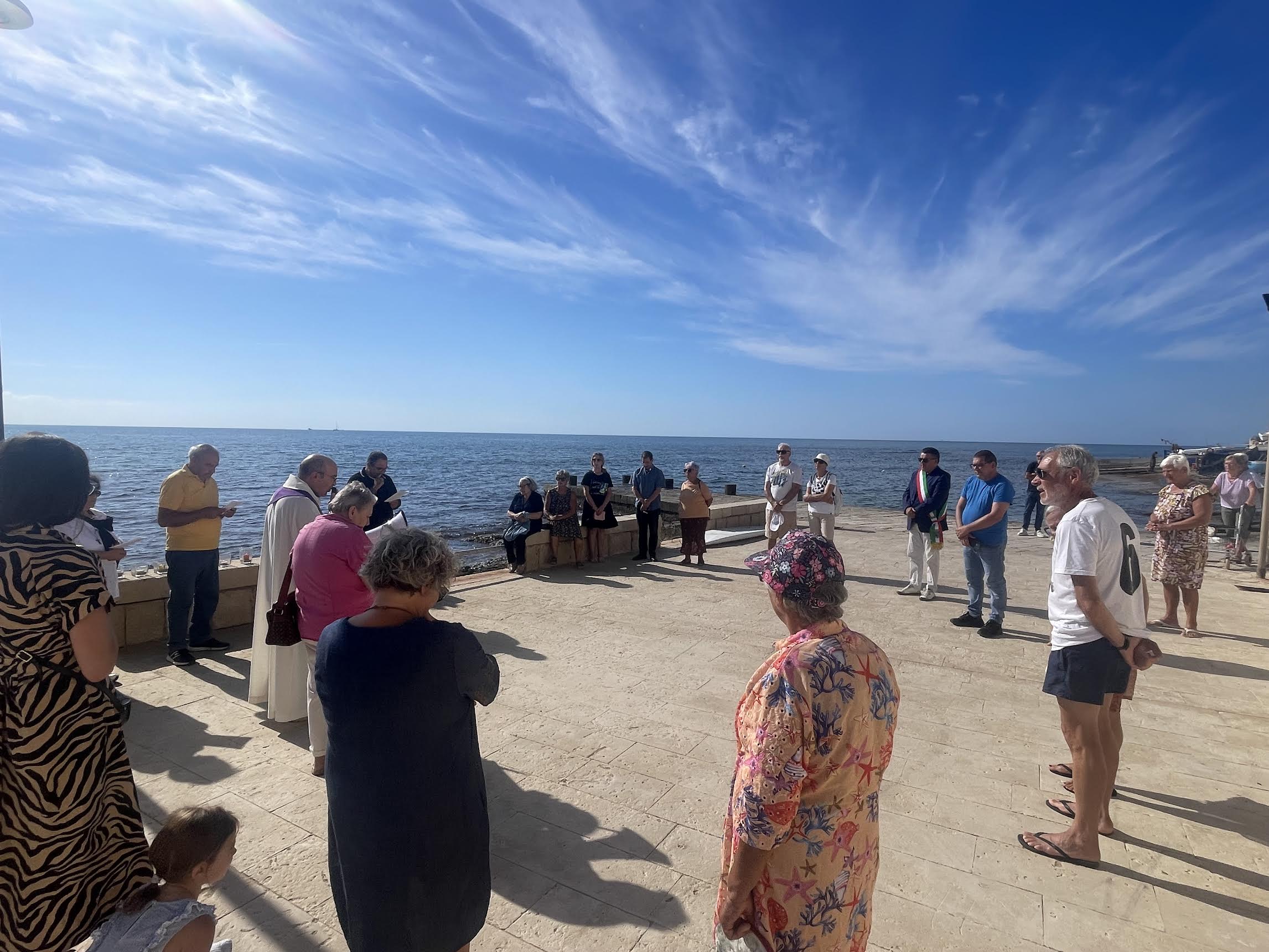 Il sindaco e padre Agosta hanno deposto due mazzi di fiori in memoria delle vittime dello sbarco sulla parte finale del moletto che affaccia sui flutti del Mediterraneo, nella preghiera che questo mare sia mare di accoglienza e mai di rifiuto.