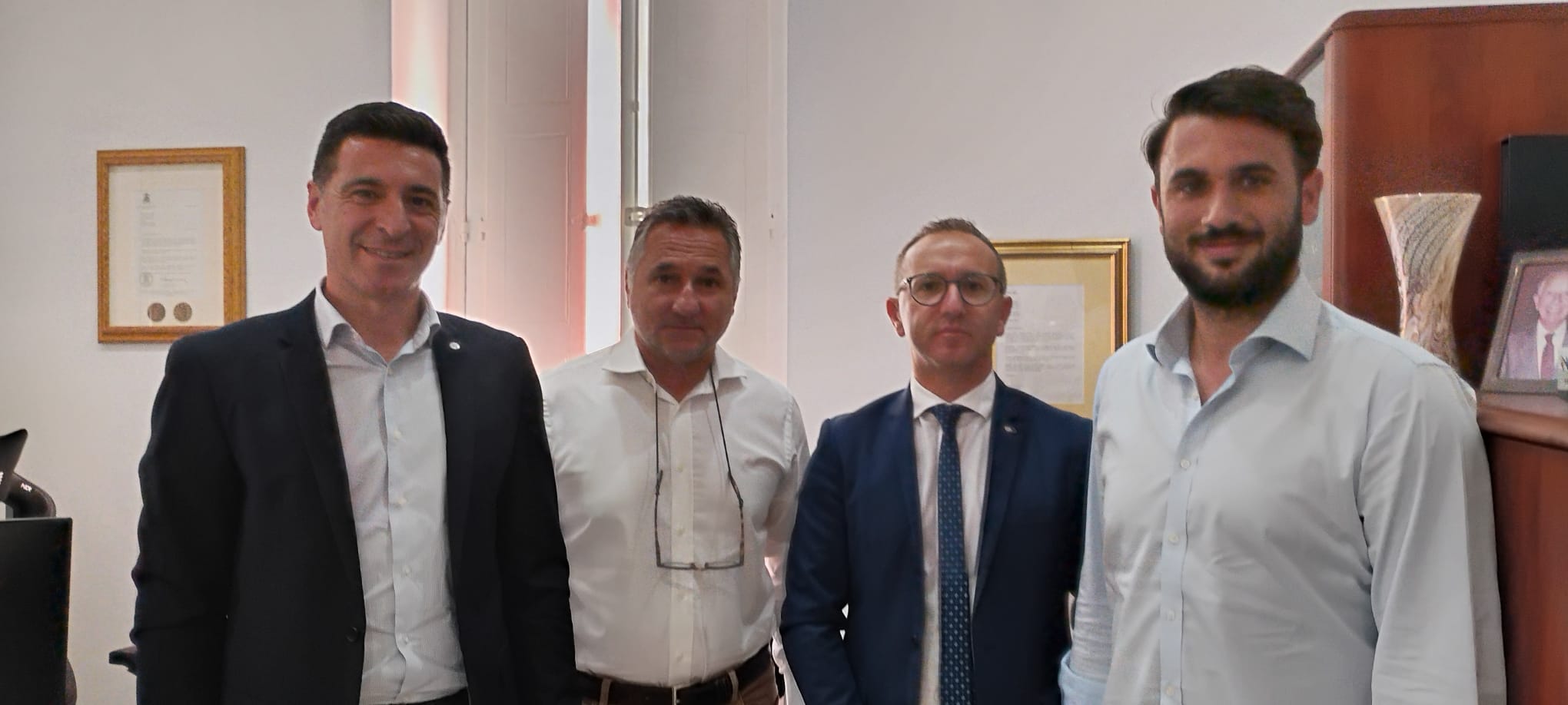 Rafforzare i rapporti tra la provincia di Ragusa e Malta per dare nuove e concrete opportunità alle aziende ragusane. È lo scopo della missione del presidente e del segretario territoriale della Cna di Ragusa che, nella giornata di venerdì scorso, hanno incontrato i vertici della compagnia navale Virtu Ferries avviando un’interlocuzione finalizzata a favorire gli interscambi tra le imprese ragusane e l’isola dei Cavalieri. Il presidente territoriale dell’associazione di categoria Giampaolo Roccuzzo e il segretario territoriale Carmelo Caccamo sono stati ricevuti a Malta dall’ad di Virtu Ferries Henri Saliba e dal suo vice James Vella per discutere della possibilità di una collaborazione volta ad intensificare i rapporti. “Virtu Ferries – ha affermato il presidente Roccuzzo – è la realtà che da decenni rappresenta il ponte tra la provincia di Ragusa e Malta favorendo l’ingresso delle nostre aziende nell’isola dei Cavalieri e, dall’altro lato, incrementando le presenze turistiche con un afflusso di circa 500mila passeggeri all’anno” (nella foto da sinistra Roccuzzo, Saliba, Caccamo e Vella).