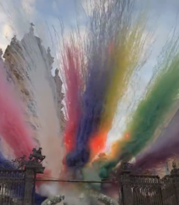 Che bello celebrare i matrimoni nella maniera migliore. A volte, però, si tende a esagerare. Soprattutto quando non si ha contezza del patrimonio storico e architettonico tutt’attorno. E’ così accaduto che una coppia di giovani comisani, presi dalla fregola di esaltare il loro giorno più bello, non ha misurato le conseguenze di quello che sarebbe potuto accadere. Ieri pomeriggio, al duomo di San Giorgio, nello scenario incantato di Ibla, dopo aver detto il loro sì e dopo avere consumato i riti tradizionali della cerimonia, la coppia si è sistemata sul sagrato per un primo momento di festeggiamento con parenti e amici. Dalle scale del duomo sono partiti botti colorati di tutte le fogge (nella foto sotto) che hanno senz’altro reso suggestivo, scenograficamente parlando, il momento. Peccato, però, che non si è pensato agli effetti collaterali.