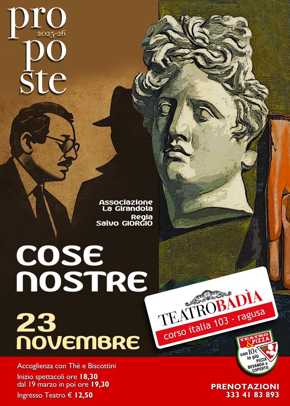 Lo spettacolo mescola una dimensione surreale a materiali d’epoca, offrendo una riflessione cruda ma necessaria sui successi contro Cosa Nostra e sugli errori di giustizia. La domanda che ne emerge resta sospesa, pungente: “Meglio rischiare un colpevole libero o un innocente in carcere?”. L’apertura del botteghino, in corso Italia 103, resta fissato alle 17,45. L’inizio dello spettacolo è alle 18,30 mentre il biglietto d’ingresso è di 12,50 euro. Dopo lo spettacolo, il pubblico, per chi è interessato, potrà godere della promozione speciale “Teatro&Pizza” (bevanda inclusa) a soli €10. Info e prenotazioni al 333 4183893.