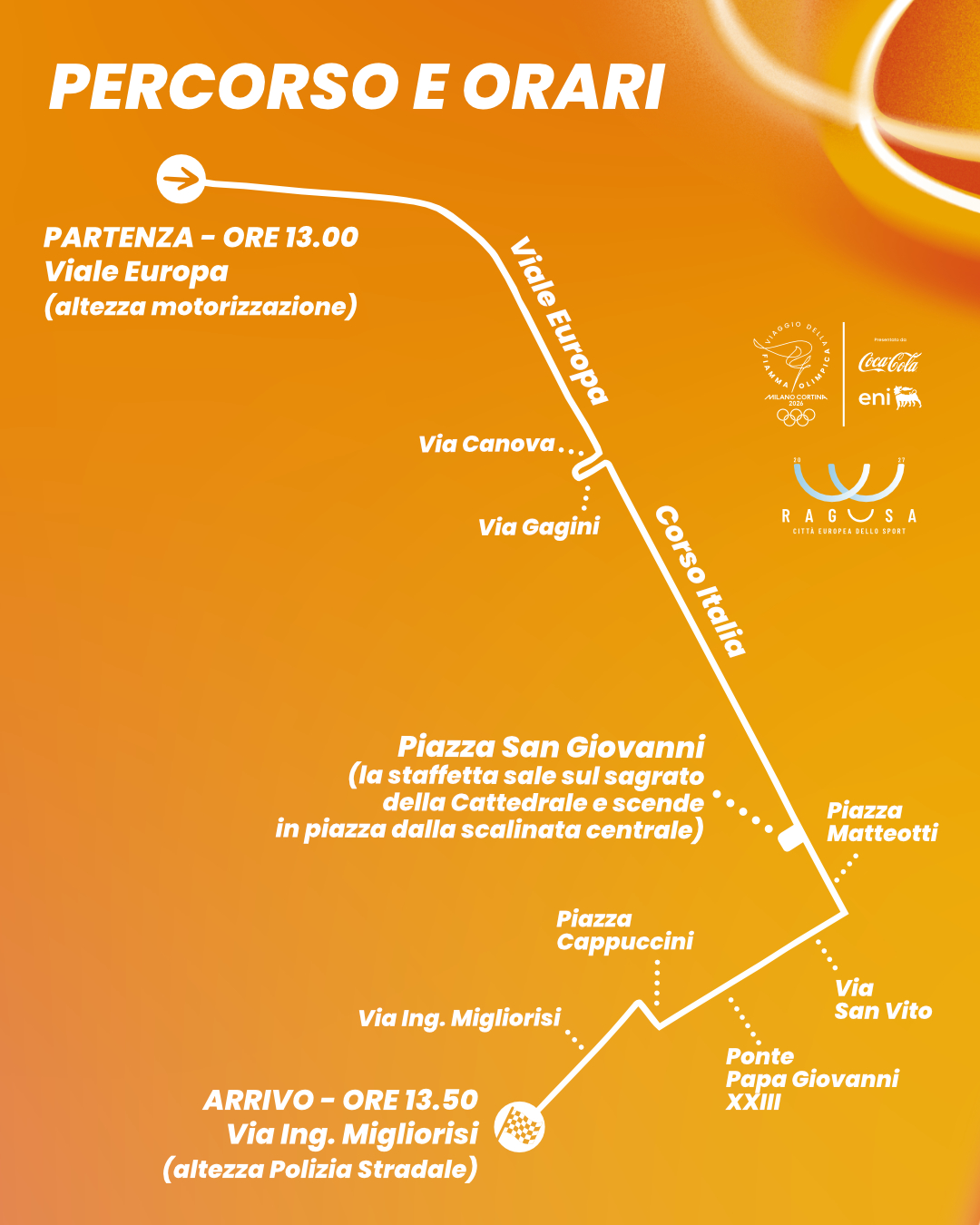 È tutto pronto per la tappa di Ragusa del Viaggio della Fiamma Olimpica di Milano Cortina 2026, prevista per mercoledì 17 dicembre dalle ore 13. Molto più di un rito sportivo: è l’avventura entusiasmante che annuncia l’arrivo dei Giochi nel nostro Paese. Un itinerario che è iniziato il 26 novembre 2025 a Olimpia, con l’accensione del tradizionale fuoco arrivato poi in Italia, a Roma, il 4 dicembre da dove, due giorni dopo, è iniziato il suo percorso, che sta attraversando tutto lo stivale, per un totale di 300 città, 20 regioni, più di 60 siti UNESCO, tra cui la nostra Ragusa, che è tra le città di transito nell’ambito della tappa Agrigento – Siracusa.