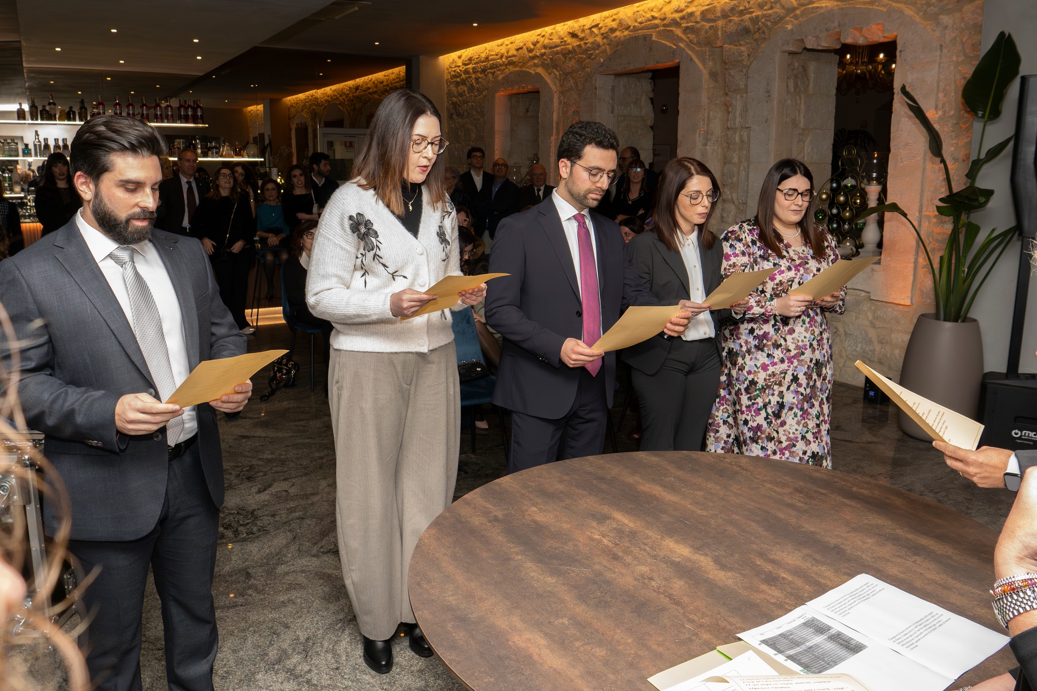 Il comitato d’onore, composto dai past president e dai dirigenti di categoria, tra cui Maria Teresa Tumino, Daniele Manenti, Giorgio Cilia, Giombattista Di Blasi, Pietro Affè, Giuseppe Antoci, Michelangelo Aurnia, Patrizia Caccamo, Giorgio Criscione, Sergio Cassisi, Corrado Cugno, Alberto Depetro, Maria Gabriella Diquattro, Antonio Grande, Giuseppe Iacono, Sonia Mallia, Francesca Mazzola, Paolo Mollura, Emanuele Muriana, Carla Occhipinti, Carmelo Nolano, Giuseppe Rosa, Bruno Sallemi e Ausilia Scapellato, ha proceduto alla consegna degli attestati di riconoscimento ai colleghi meritevoli, sottolineando l’importanza della professionalità e del percorso di crescita all’interno dell’Ordine. Momento centrale della serata è stata la cerimonia di giuramento dei nuovi iscritti: Antonio Attinelli, Giuseppe Dipasquale, Riccardo Iudice, Raffaella Ragusa, Irene Sammito e Pamela Sinacciolo, chiamati a testimoniare il proprio impegno e la propria dedizione nei confronti della professione. Il presidente Attinelli ha poi consegnato personalmente il kit di benvenuto ai nuovi membri, augurando loro un percorso ricco di soddisfazioni e successi.