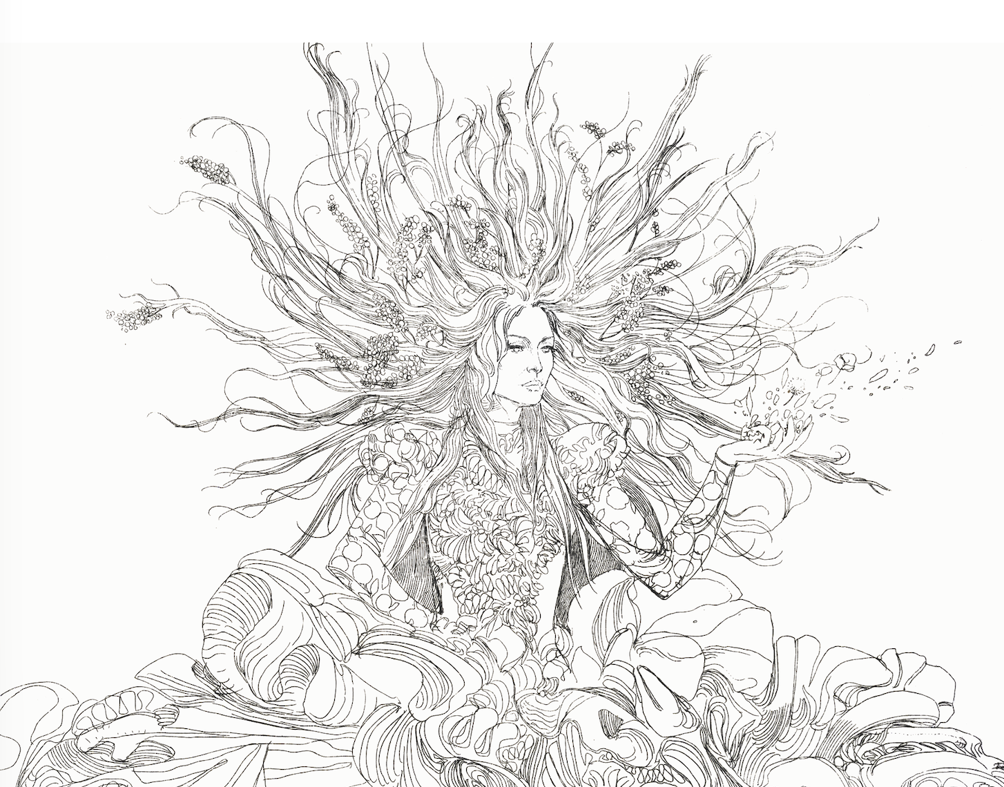 “L’opera raffigura Patty Pravo nell’atto di soffiare su petali di fiori: un gesto delicato e simbolico che richiama l’armonia tra la sua voce e la natura, metafora stessa dell’opera d’arte.- Ha raccontato Giovanni Robustelli- L’immagine è stata realizzata attraverso la tecnica dell’acquaforte, antica tecnica calcografica di grande fascino e suggestione”.