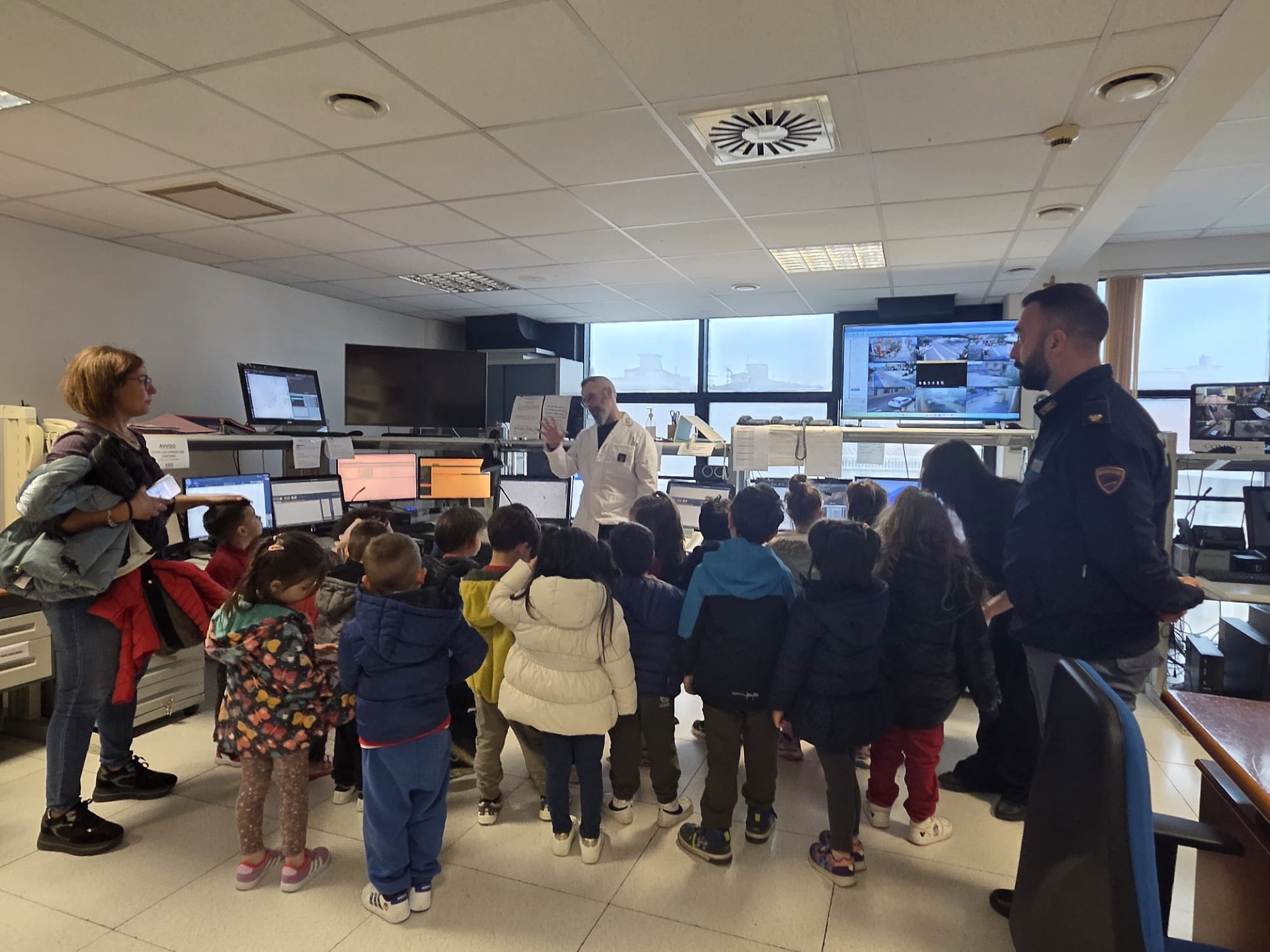 La polizia di Stato ha aperto le porte della Questura di Ragusa ai piccoli alunni della scuola per l’infanzia “La Palla Magica”. I bambini, che avevano già incontrato i poliziotti all’interno della loro aula, hanno potuto osservare e toccare con mano i mezzi e le attrezzature in dotazione alla polizia, hanno visitato alcuni uffici, tra cui la sala operativa. Qui hanno anche avuto l’emozione di ascoltare via radio le pattuglie impegnate sul territorio.