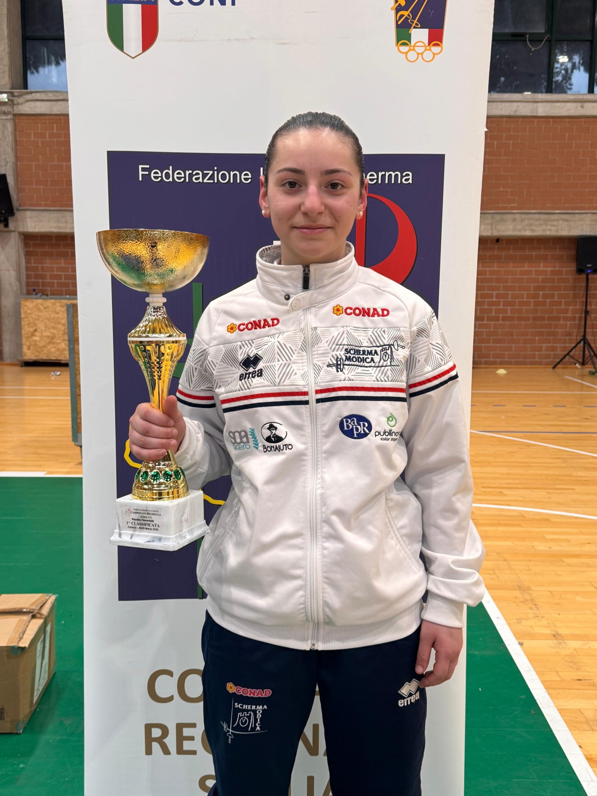 A distanza di una settimana dalla eccezionale conquista di ben 6 titoli regionali under14, altro fine settimana di grande spessore per la Conad Scherma Modica. La società della contea è stata protagonista nei Campionati Regionali Assoluti al PalaCus di Catania, con risultati che l’hanno vista imporsi con autorità nel fioretto, conquistando sia il primo che il secondo posto nel maschile e nel femminile. Nel fioretto femminile è Ottavia Iacono (nella foto sopra) a salire sul gradino più alto del podio, laureandosi campionessa regionale assoluta 2026, davanti alla compagna di squadra Cecilia Raunisi, seconda classificata. Una doppietta che certifica il valore del gruppo modicano e consente ad entrambe di accedere al Campionato Nazionale Gold Assoluto, e per Iacono anche alla rispettiva prova giovani.