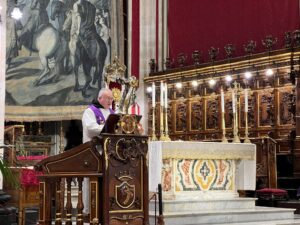 Le melodie della banda “San Giorgio – Città di Ragusa”, cariche di mestizia e devozione, hanno accompagnato il corteo, rendendo ancora più suggestivo un rito che, anno dopo anno, continua a parlare al cuore dei fedeli. La processione si è tenuta solo a metà. Per via della pioggia. Ripartirà stasera alle 19,30 dal duomo di San Giorgio. Con questa processione si sono completati tutti i cortei legati al Quarantore, un percorso che prepara la città a vivere con intensità i giorni più solenni dell’anno liturgico. Il programma scandisce oggi le ore con intensità crescente: alle 17,30, nella chiesa Madre, l’esposizione del Santissimo Sacramento; alla stessa ora, nella chiesa di San Tommaso, la celebrazione della santa messa. Alle 19, ancora nella chiesa Madre di San Giorgio, la messa e la chiusura del Quarantore di adorazione, seguita alle 21 dalla preghiera davanti al Crocifisso, un momento che ogni anno richiama fedeli di tutte le età. Domani, alle 10, nella cattedrale di San Giovanni Battista, la messa crismale riunirà clero e comunità in uno dei riti più significativi della Settimana Santa. Nel pomeriggio, alle 18, la messa in Coena domini sarà celebrata nella chiesa di San Tommaso e replicata alle 20 nella chiesa Madre di San Giorgio, dove alle 23 avrà luogo l’Ora Santa. Dalla mezzanotte fino alle 10 del mattino successivo, sempre nella chiesa Madre, si terrà la veglia di preghiera. In un tempo in cui tutto sembra correre veloce, questi momenti restituiscono alla comunità un ritmo diverso, fatto di ascolto, memoria e gratitudine.