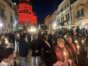 Ragusa Ibla si è lasciata avvolgere da una quiete mesta, in una sera destinata a fissarsi nella memoria collettiva. Tra i capolavori del barocco tutelati dall’Unesco, la processione del Venerdì santo ha attraversato il centro storico come un lungo respiro trattenuto, trasformando le strade di pietra in un luogo di meditazione e dolore condiviso.