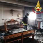 I vicini allarmati dalla presenza fuligine che fuoriusciva all’esterno, hanno chiesto l’intervento dei Vigili del fuoco che hanno accertato che un incendio lento ha gravemente danneggiato l’altare in legno.