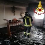L’incendio presumibilmente si è originato da alcune candele votive lasciate accese.